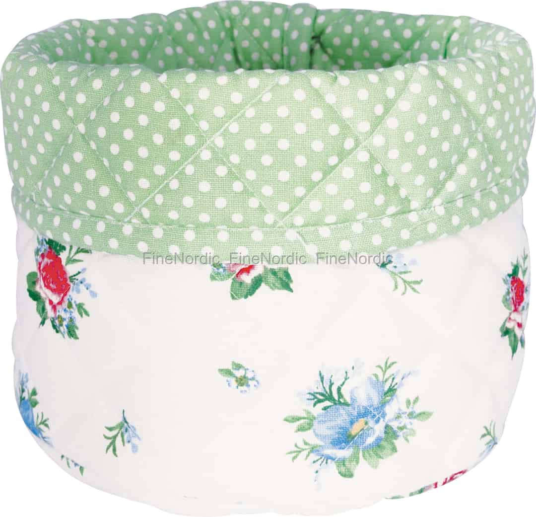GreenGate versteht es auf wundervolle Weise, die Essenz kostbarer Momente einzufangen, und der Brotkorb Alivia White ist ein perfektes Beispiel dafür. Das Design wirkt wie eine Seite aus einem geliebten Märchenbuch, mit zarten roten und blauen Blüten, die über eine frische weiße Baumwoll-Leinwand verstreut sind. Dieses zeitlose Blumenmuster wird wunderschön durch das frische, mintgrüne Punktemuster im Inneren ergänzt, das sich in der charmanten Umschlagmanschette zeigt. Es ist ein Stück, das nicht nur Brot hält; es birgt das Versprechen warmer, gemeinsamer Stunden.