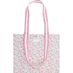 Doch über ihr liebliches Aussehen hinaus ist diese Tasche für das wahre Leben gemacht. Die langlebige Wachstuchkonstruktion ist sowohl leicht als auch praktisch und bereit für alles, vom Gang zur örtlichen Bäckerei bis zum Transport Ihrer neuesten Bibliotheksfunde. Die kontrastierenden rosa-weiß gestreiften Griffe verleihen eine verspielte Note und sorgen für ein angenehmes Tragegefühl. Das macht sie zum perfekten, zuverlässigen Accessoire, um ein wenig blumige Fröhlichkeit in Ihren Alltag zu bringen.