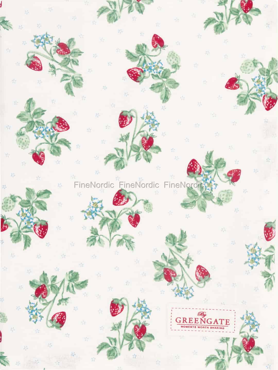 Lassen Sie die süße, schlichte Freude einer Sommerwiese in Ihrem Zuhause aufblühen – mit dem Berry White Geschirrtuch von GreenGate. Das Design ist eine Hommage an kostbare Erinnerungen an das Sammeln von Walderdbeeren, mit reifen roten Beeren, frischen grünen Blättern und Büscheln winziger blauer Blüten, die über eine weiche, cremeweiße Baumwoll-Leinwand verstreut sind. Es ist ein klassisches GreenGate-Muster, das die Philosophie der Marke einfängt, Schönheit in alltäglichen Momenten zu finden und ein einfaches Küchenutensil in ein kleines Kunstwerk zu verwandeln, das eine Geschichte von Wärme und Nostalgie erzählt.