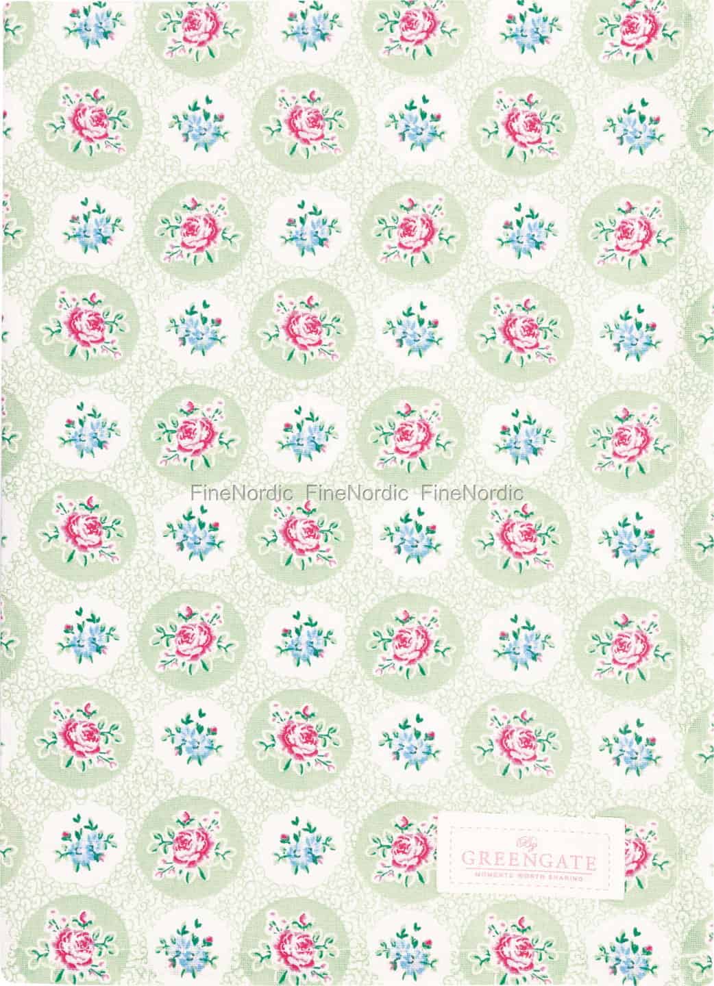 Stellen Sie sich die sanfte Wärme eines Sommermorgens in einem Landhausgarten vor. Das Geschirrtuch Elle Pale Green fängt dieses Gefühl perfekt ein, mit seinem zarten Blumenmuster aus rosa Rosen und sanften blauen Blüten auf reiner, weicher Baumwolle.