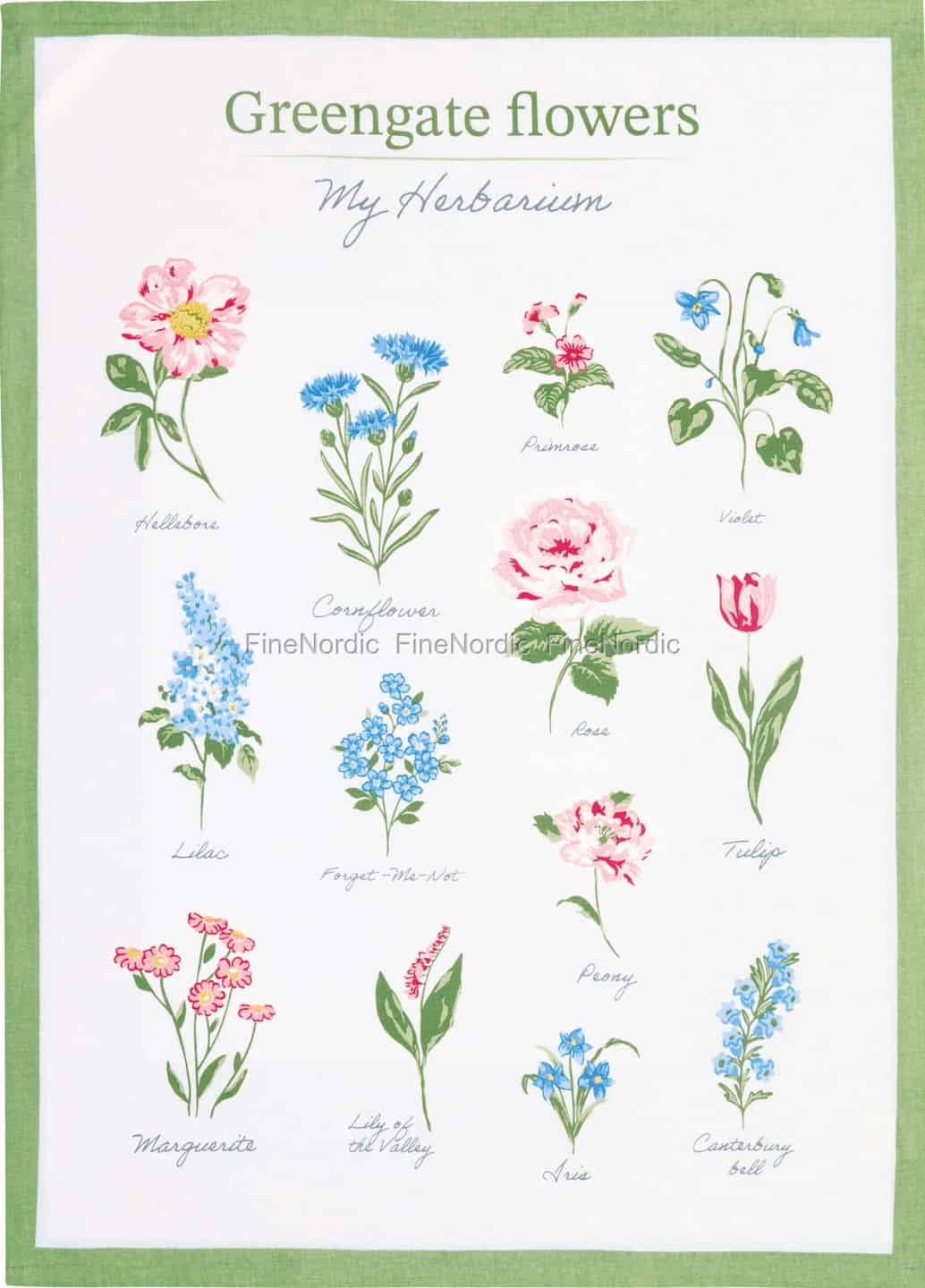 Stellen Sie sich eine sanfte Brise vor, die den Duft eines blühenden Gartens durch Ihr Küchenfenster trägt. Dieses wunderschöne GreenGate Geschirrtuch fängt genau dieses Gefühl ein und verwandelt einen alltäglichen Helfer in ein Stück botanischer Kunst für Ihr Zuhause.