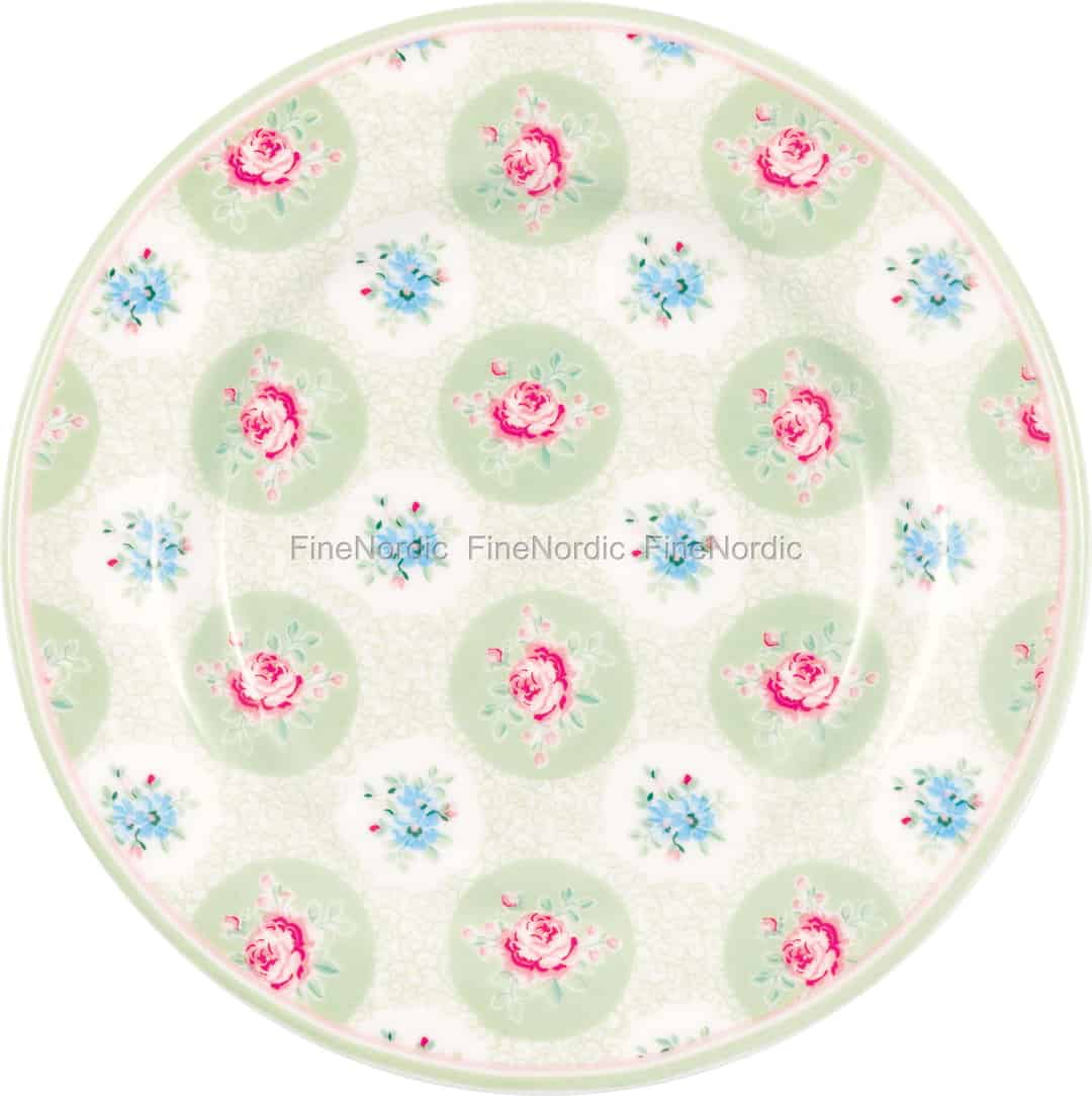 Stellen Sie sich einen stillen Morgenmoment vor, ein Stück frisch gebackener Kuchen, das nur auf Sie wartet. Der Teller Elle Pale Green von GreenGate erweckt diese zarte Szene mit seinem filigranen Blumenmuster und den sanften, beruhigenden Farben zum Leben.