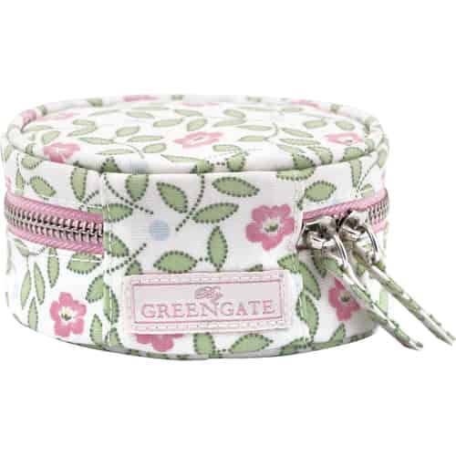 Hier ist eine Kosmetiktasche im Design Lotta White. Feine Kosmetiktaschen sehen toll aus in Ihrer Hand. GreenGate Kosmetikbeutel Lotta White Klein, finden Sie das Produkt hier bei FineNordic. Der Name auf Englisch ist "Cosmetic bag Lotta white small", und das Produkt ist aus der "GreenGate Spring/Summer 2024" Kollektion.
