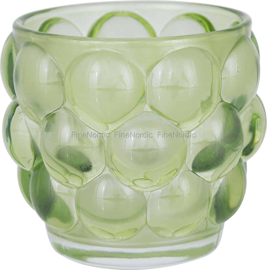 Holen Sie das sanfte, erholsame Licht der skandinavischen Morgendämmerung in Ihr Zuhause. Dieser charmante Teelichthalter aus zartgrünem Glas fängt das Licht auf wunderschöne Weise ein und schafft eine friedvolle Atmosphäre für Ihre ruhigen Augenblicke.