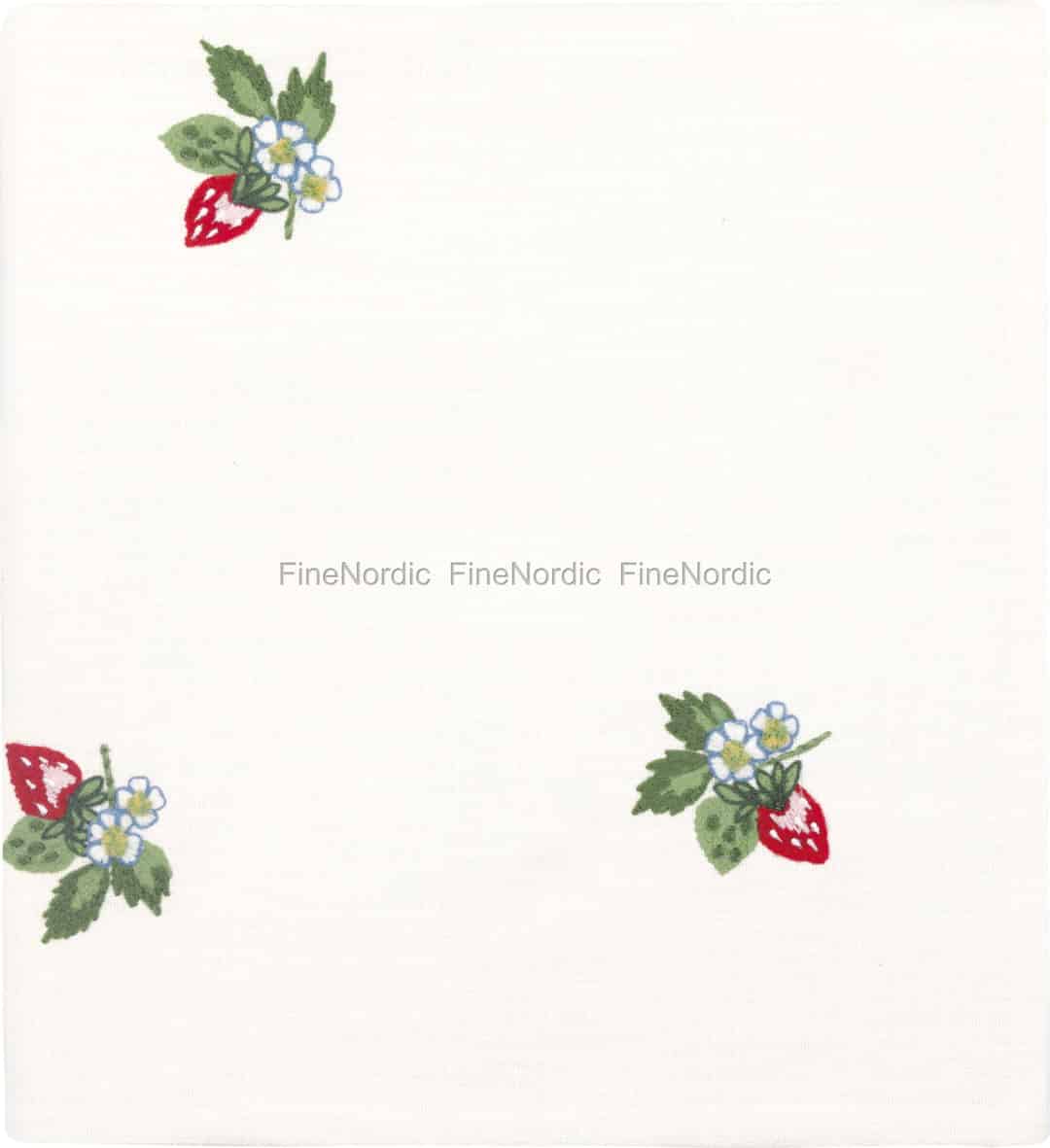 Stellen Sie sich einen warmen Sommertag in einem dänischen Garten vor, erfüllt vom süßen Duft reifer Erdbeeren. Die Tischdecke Berry White von GreenGate fängt genau diese unbeschwerte Freude ein und verleiht Ihrem Zuhause einen Hauch von handgefertigtem Charme.