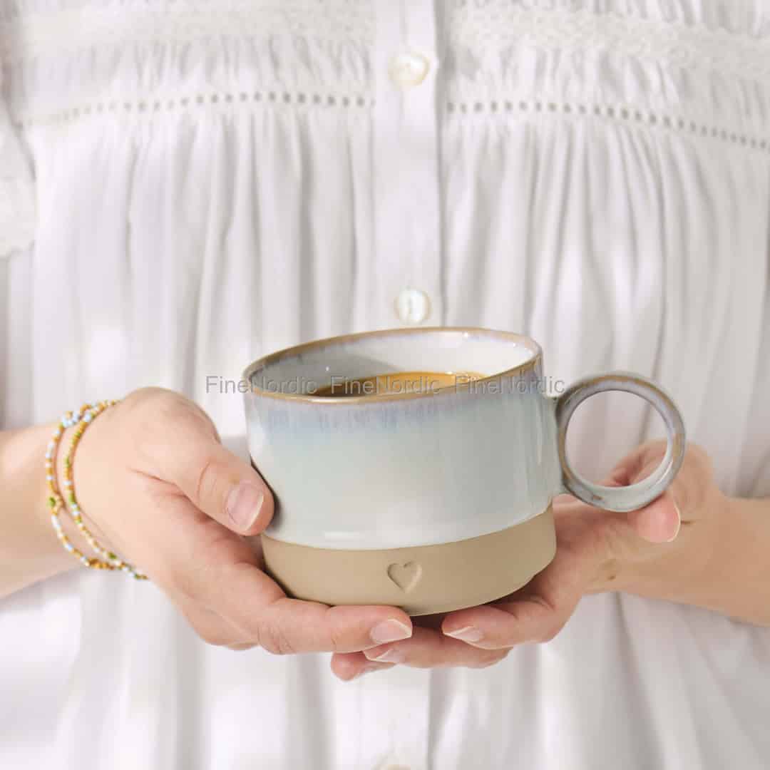 Stellen Sie sich einen ruhigen Morgen vor, der sanfte Dampf steigt von Ihrem frisch gebrühten Tee oder Kaffee auf. Dieser Becher mit seiner robusten Form und dem großzügigen Henkel liegt genau richtig in Ihren Händen. Er ist ein Stück, das einen Hauch von rustikalem nordischem Charme in Ihre Küche bringt und die einfachen, alltäglichen Momente zu etwas Besonderem macht. Er ist der perfekte Begleiter, um ein Buch zu lesen, sich mit einem Freund auszutauschen oder einfach einen Moment friedlicher Stille zu genießen.