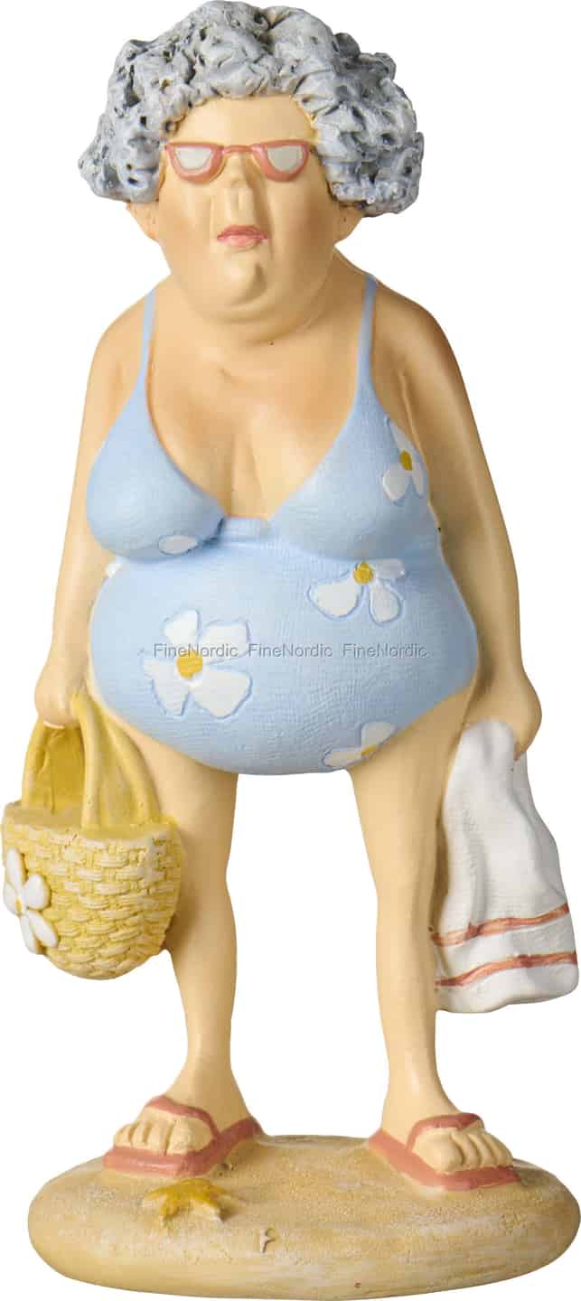 Lernen Sie eine der wundervollen 'Beach Queens' von Ib Laursen kennen – eine Figur, die die einfache, unbeschwerte Freude eines perfekten Tages an der Küste verkörpert. Man kann fast den warmen Sand unter ihren Füßen spüren und das ferne Rauschen der Wellen hören. Mit dem Handtuch in der einen und der Tasche in der anderen Hand ist sie bereit für ein Bad im Meer und erinnert uns an kostbare Urlaubserinnerungen und die bunten Persönlichkeiten, die sie so besonders machen. Ihre Anwesenheit ist eine sanfte Ermutigung, das Leben mit Selbstvertrauen und einer Prise Humor zu genießen.