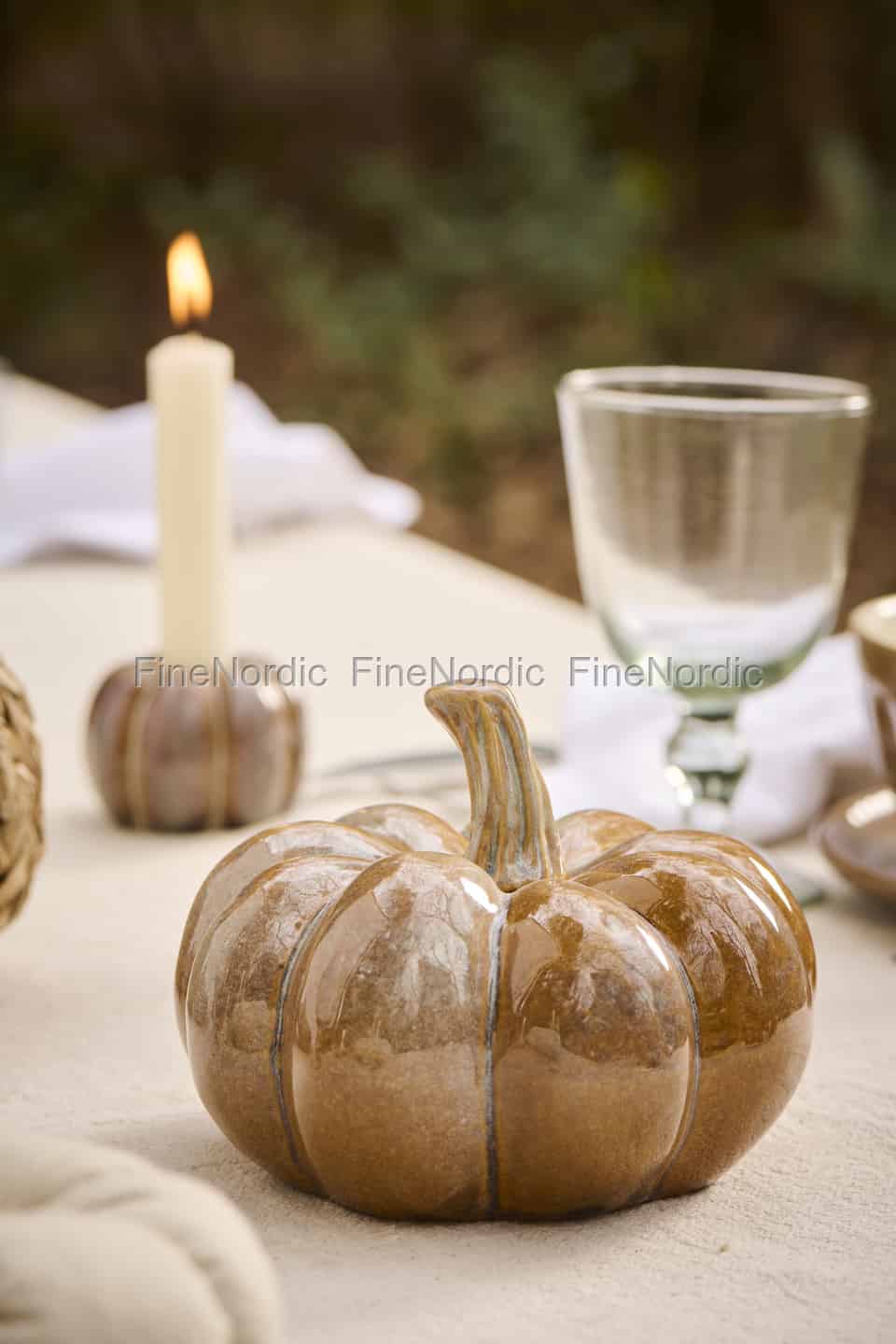 - Eine wahrhaft einzigartige Oberfläche: Veredelt mit einer reaktiven Glasur, besticht jeder Kürbis durch feine Variationen in seinen gesprenkelten Brauntönen. Dies stellt sicher, dass Ihr Dekorationsstück ein absolutes Unikat ist.