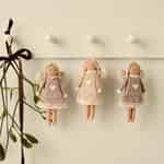 Stellen Sie sie sich vor, wie sie sich zwischen die grünen Zweige Ihres Weihnachtsbaumes schmiegen oder heiter an einer Hakenleiste in Ihrem Flur hängen und alle Besucher sanft willkommen heißen. Ihre textilen Formen und die handgefertigte Anmutung bringen eine spürbare Wärme und Weichheit in Ihre saisonale Gestaltung. Lassen Sie dieses Trio von Schutzengeln über Ihr Zuhause wachen, eine friedliche Atmosphäre schaffen und Sie an die stillen, glücklichen Momente erinnern, die die Jahreszeit wirklich besonders machen.