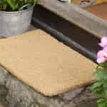 Empfangen Sie Ihre Gäste mit dem schlichten, rustikalen Charme dieser klassischen Fußmatte. Ihre aus langlebigen Kokosfasern gewebte, wunderschön strukturierte Oberfläche ist ein natürlicher und authentischer Willkommensgruß, der vom ersten Schritt an eine herzliche Atmosphäre schafft.