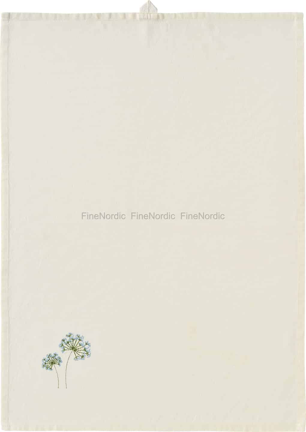 Bringen Sie mit dem Geschirrtuch Flora einen Hauch stiller Schönheit in Ihre täglichen Küchenrituale. Seine weiche, buttercremefarbene Baumwolle ziert die feine Stickerei einer wilden Doldenblume – eine sanfte Hommage an die skandinavischen Wiesen.