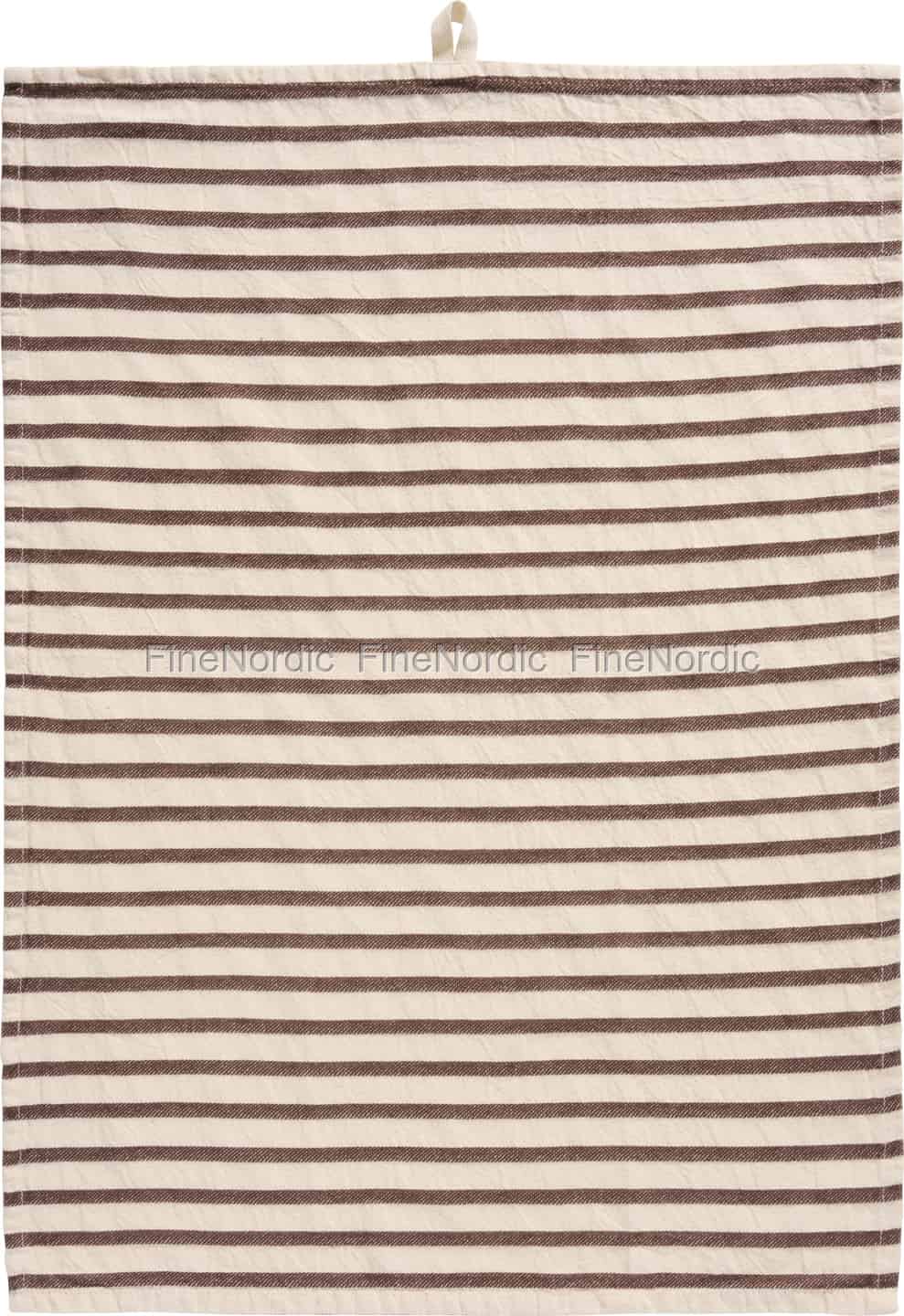 Stellen Sie sich das wohlige Gefühl weicher, natürlicher Baumwolle vor, während Sie sich nach dem Backen die Hände abtrocknen. Das Geschirrtuch Freddy von Ib Laursen bringt mit seinen klassischen braunen Streifen und seinem ehrlichen Charme genau diese schlichte, rustikale Wärme in Ihre Küche.