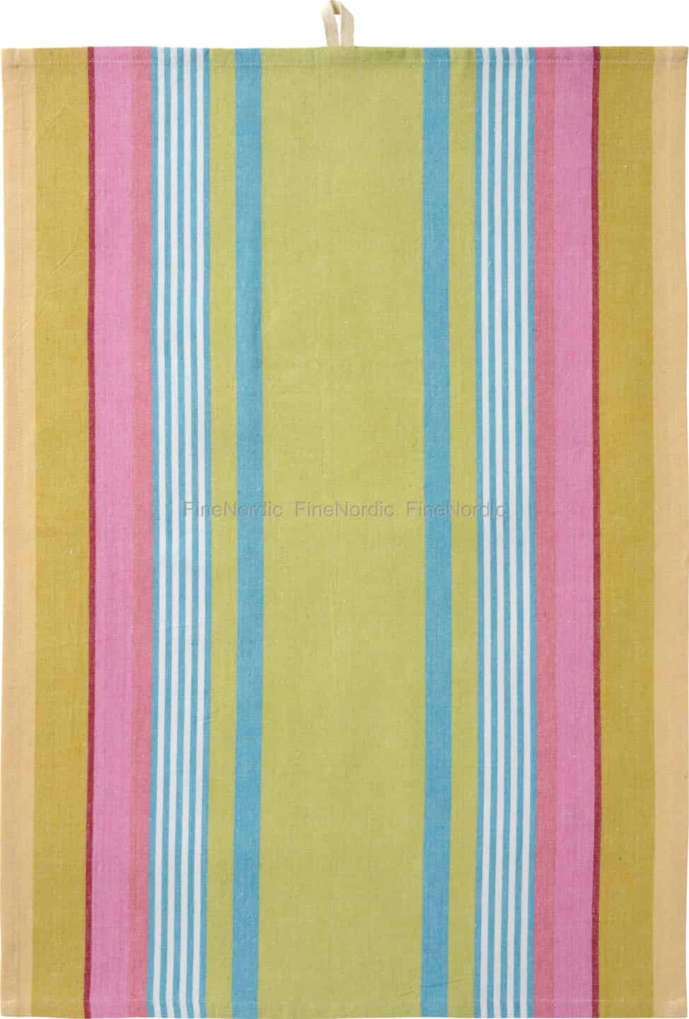 Lassen Sie sich vom herzerwärmenden Charme des dänischen Designs mit diesem liebevollen gestreiften Geschirrtuch von Ib Laursen verzaubern. Das farbenfrohe Muster erinnert an lange, lichterfüllte Tage in einem Sommerhaus, wo frische Wäsche in einer sanften Brise auf der Leine tanzt. Jeder Streifen – vom spritzigen Lindgrün über das zarte Himbeerrosa bis hin zum Himmelblau – wirkt harmonisch zusammen und schafft ein Design, das sich sowohl nostalgisch als auch wunderbar frisch anfühlt. Es ist mehr als nur ein Küchentuch; es ist ein kleines Stück alltäglichen Glücks, das entworfen wurde, um Ihnen ein Lächeln ins Gesicht zu zaubern.