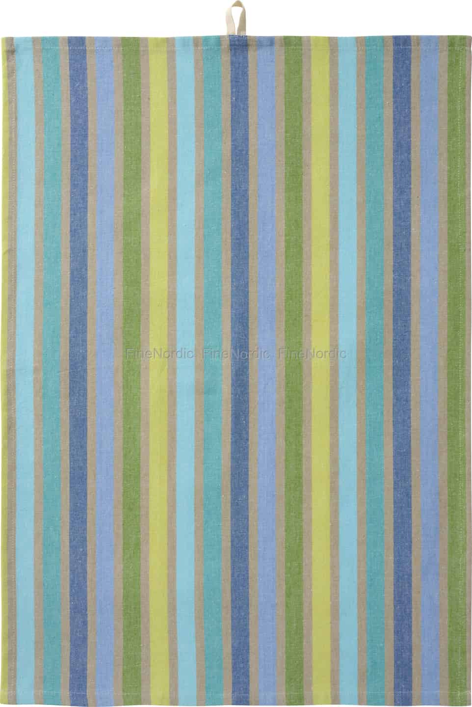 Stellen Sie sich vor, wie das sanfte Licht eines Morgens am Meer Ihre Küche erfüllt. Dieses wunderschöne Geschirrtuch von Ib Laursen fängt genau dieses Gefühl ein, mit seinen beruhigenden Streifen in Blau, Grün und sandigem Beige, und verleiht Ihrem Alltag einen schlichten Hauch von nordischem Charme.