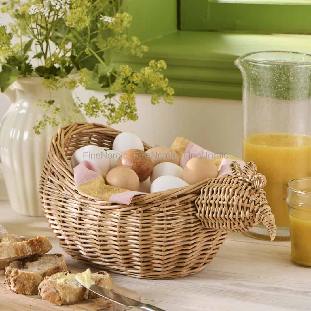 Stellen Sie sich eine sonnendurchflutete Küche vor, der Duft von frischem Brot liegt in der Luft. Dieser bezaubernde, hennenförmige Korb von Ib Laursen bringt genau diese rustikale Wärme in Ihr Zuhause – ein entzückender Hauch von Landleben.