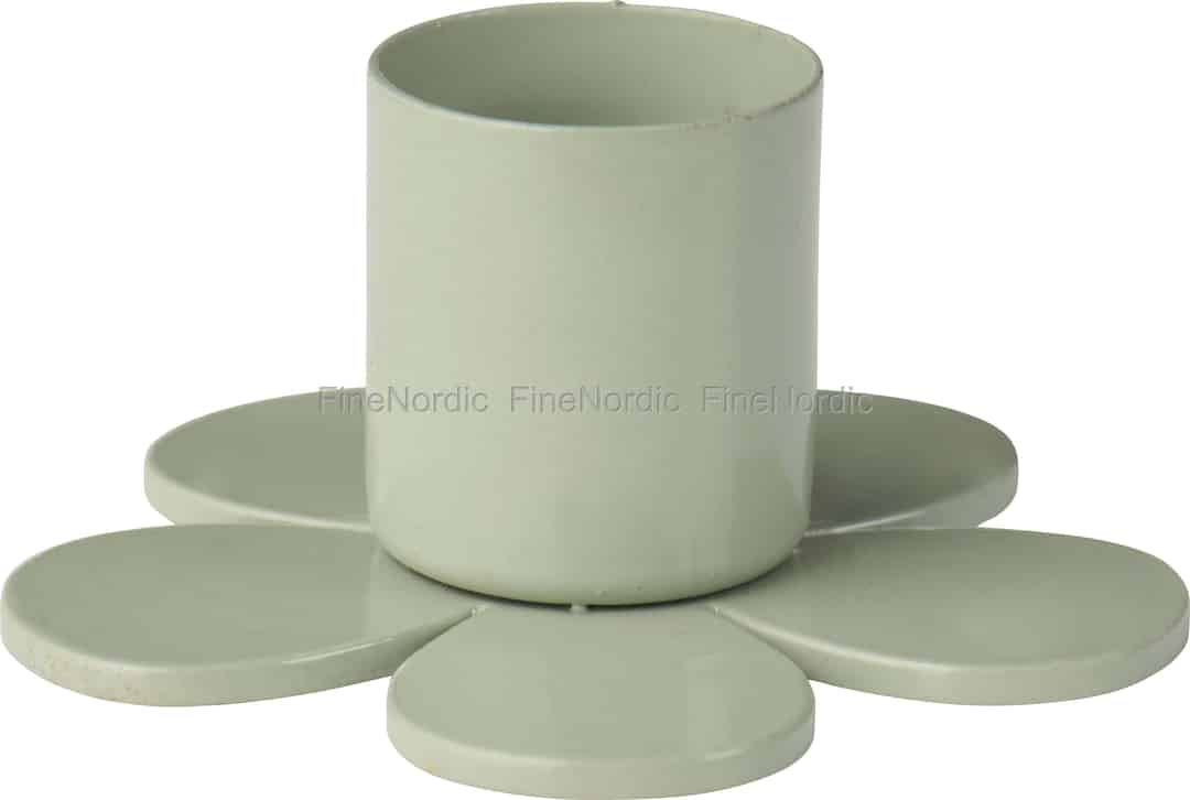 Stellen Sie sich einen ruhigen Spaziergang durch ein dänisches Feld im Frühsommer vor, wo sich einfache Wildblumen in der sanften Brise wiegen. Das ist der Geist, der in Ib Laursens charmantem Blumen-Kerzenhalter eingefangen ist. Das Design ist wunderschön schlicht, mit sechs abgerundeten Blütenblättern, die eine stabile, anmutige Basis für Ihre Kerze bilden. Seine staubgrüne Farbe erinnert an junge Blätter und ruhige Momente und bringt einen authentischen Hauch nordischer Natur direkt auf Ihren Tisch oder Kaminsims.