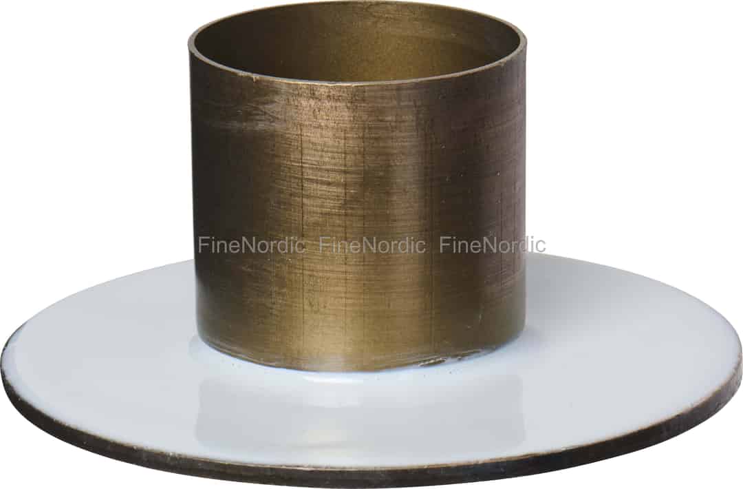 Entdecken Sie die schlichte Eleganz dieses wunderschönen Kerzenhalters von Ib Laursen, ein Stück, das die dänische Wertschätzung für einfaches, funktionales Design verkörpert. Der durchdachte Kontrast zwischen der kühlen, glänzenden hellblauen Emaille des Sockels und der warmen, gebürsteten Textur des messingfarbenen Metallbechers schafft ein reizvolles visuelles und haptisches Erlebnis. Der dunkle, rustikale Rand des Sockels verleiht ihm einen Hauch von authentischem Charakter, eine Erinnerung an die Handwerkskunst, die hinter diesem schönen Objekt steckt.