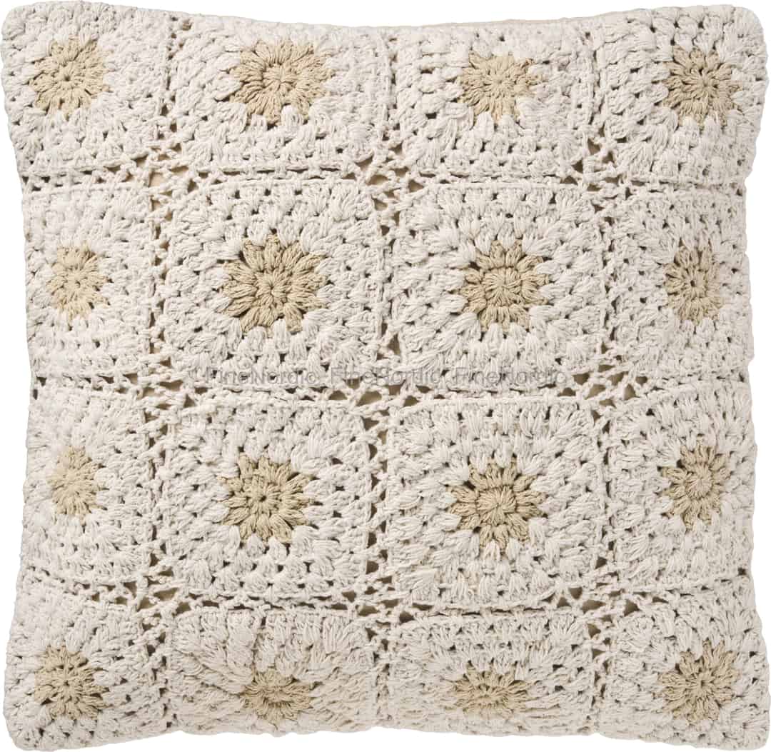 Entdecken Sie die Schönheit traditioneller Handwerkskunst mit dieser exquisiten Kissenhülle von Ib Laursen neu. Jedes Quadrat wird sorgfältig aus weichem, dickem Baumwollgarn gehäkelt und formt ein zeitloses Blumenmuster, das von ruhigen Nachmittagen und geschätzten Erbstücken erzählt. Das Zusammenspiel von Creme- und Naturbeigetönen schafft eine beruhigende visuelle Harmonie, während das durchbrochene Maschenbild einen Blick auf den robusten Canvasstoff darunter freigibt. Es ist ein Stück, das einen Raum nicht nur schmückt, sondern ihn mit einem Gefühl von Geschichte und sanftem, taktilem Komfort erfüllt, der zum Berühren einlädt.