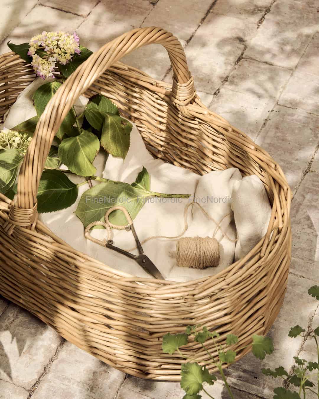 Stellen Sie sich einen sonnenverwöhnten Nachmittag vor, mit dem Duft frisch geschnittener Blumen oder der Vorfreude auf ein Picknick in der Luft. Dieser wunderschön gearbeitete Weidenkorb von Ib Laursen ist dafür geschaffen, Ihr treuer Begleiter für diese kostbaren Momente zu sein.