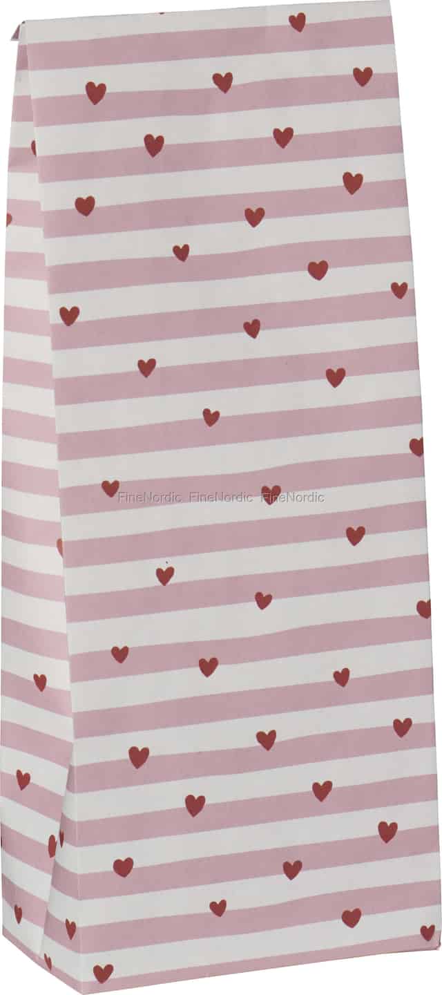 Ib Laursen Papiertüte - Rote Herzen, hellrosa Streifen - Mittel