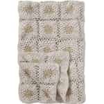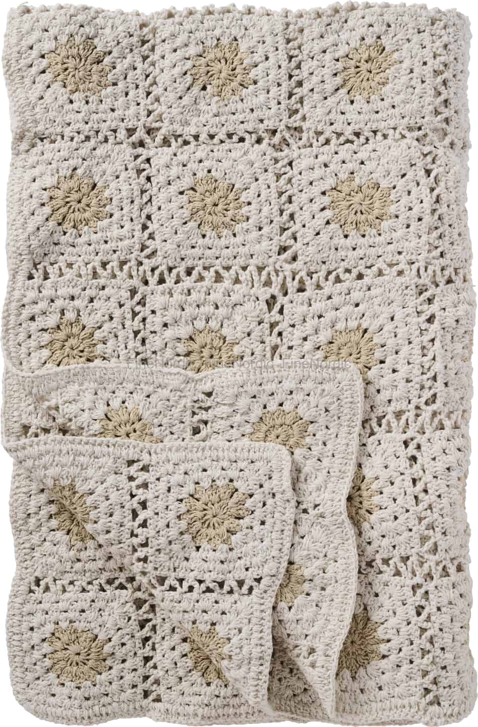 Ib Laursen Plaid - Gehäkelt - Creme - Naturfarbene Blumen 130 x 170 cm