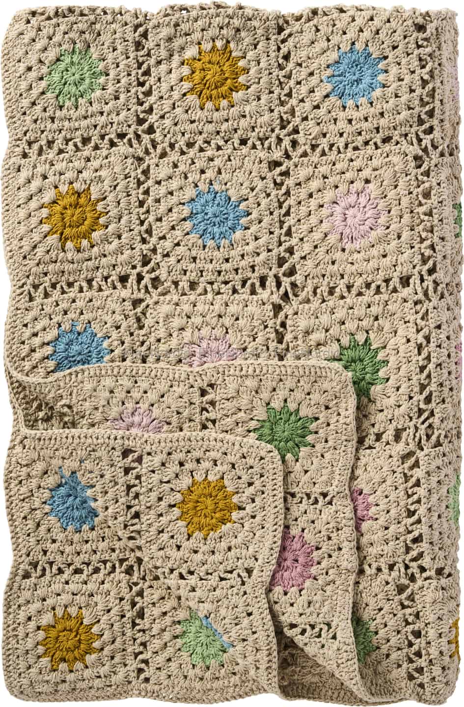 Ib Laursen Plaid - Gehäkelt - Naturfarben - Mehrfarbige Blumen 130 x 170 cm