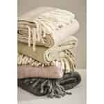 - Bezaubernde strukturelle Details: Abgerundet mit dicken, cremefarbenen Fransen, vermittelt dieses Plaid ein klassisches, handgefertigtes Gefühl, das Ihrer Einrichtung einen Hauch von rustikalem Charme verleiht.