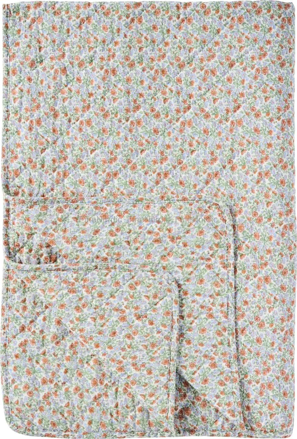 Holen Sie die zarte Schönheit eines Landhausgartens in Ihr Zuhause. Mit seinem feinen Blumendruck in sanftem Rostrot und Hellblau weckt dieser Quilt von Ib Laursen das Gefühl eines friedlichen Nachmittags inmitten von Blumen.