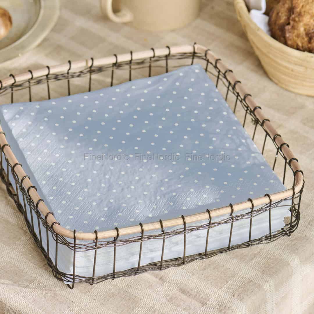 Platziere ihn in der Mitte deines Frühstückstisches, gefüllt mit bunten Servietten, um den Morgen zu begrüßen, oder bewahre ihn auf der Kücheninsel für den täglichen Gebrauch auf. Seine großzügigen Maße von 23 x 23 cm stellen sicher, dass er reichlich Platz für Servietten für Familie und Gäste bietet. Dies ist nicht nur eine Möglichkeit, Servietten aufzubewahren; es ist eine Einladung, die einfachen, hyggeligen Momente zu genießen, die ein Haus zu einem Zuhause machen, und mühelose Organisation sowie einen Hauch von ländlichem Charme in deine täglichen Rituale zu bringen.