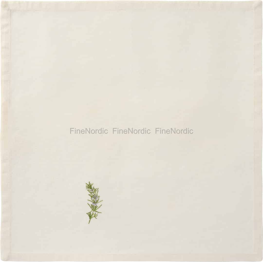 Stellen Sie sich einen Tisch in einem sonnengetupften Garten vor, die Luft erfüllt vom sanften Duft der Kräuter. Diese wunderschöne buttercremefarbene Serviette von Ib Laursen mit ihrem zart gestickten Rosmarinzweig fängt genau dieses Gefühl entspannter Sommertreffen ein.