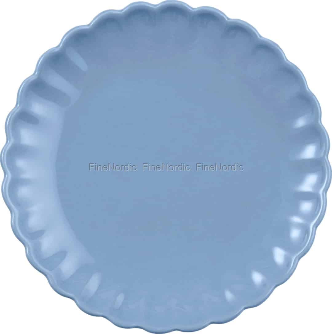 Klassischer teller mit wellenrand in heiterem glockenblumenblau