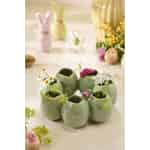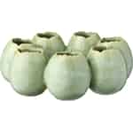 Begrüßen Sie die sanfte Ankunft des Frühlings mit dieser entzückenden, kreisförmigen Vase von Ib Laursen. Ihr Design, das an ein Nest aus kleinen Eiern erinnert, ist ein wunderschönes Symbol für den Neuanfang. Die zarte, salbeigrüne Keramik ist mit einer Reaktivglasur veredelt, die jedem Stück eine subtile, einzigartige Textur verleiht und das Licht auf zauberhafte Weise einfängt. Die organischen, sanft gewellten Ränder jeder der sieben Öffnungen verstärken den handwerklichen Charakter und laden dazu ein, ihre schlichte Eleganz zu berühren und zu bewundern.