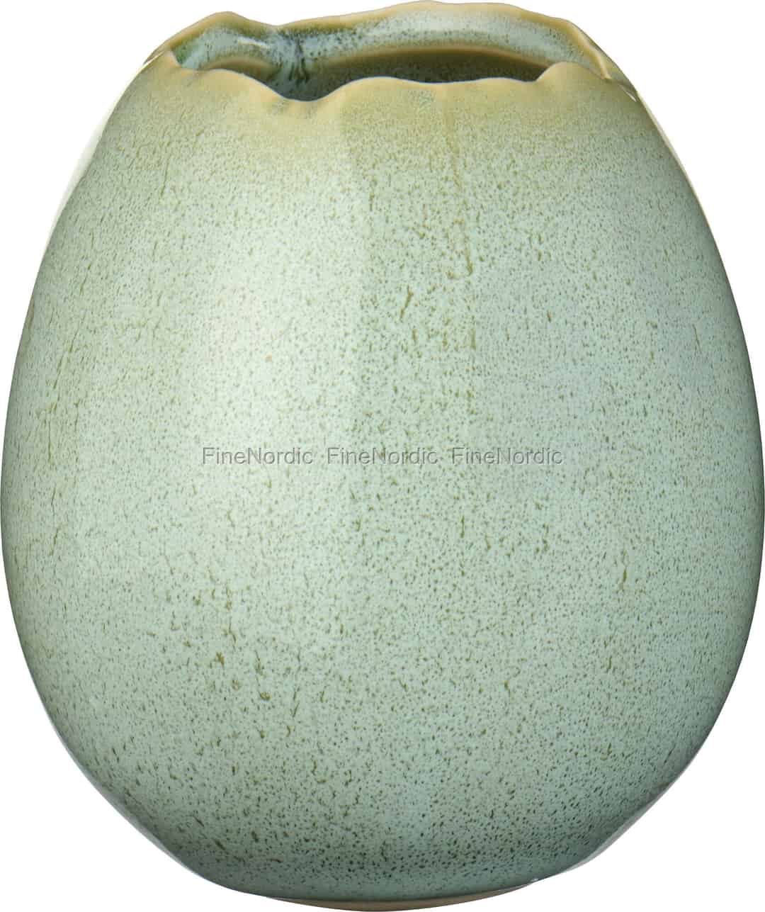 Es liegt eine besondere, stille Freude darin, eine einzelne, perfekte Blume zu finden. Diese exquisite kleine Vase von Ib Laursen wurde geschaffen, um dieses schlichte Vergnügen zu ehren. Ihre wunderbar taktile Reaktivglasur in sanftem, erdigem Grün bedeutet, dass jedes Stück sein eigenes, einzigartiges Muster aus Sprenkeln und Farbtönen besitzt, ähnlich den Variationen, die man in der Natur selbst findet. Die sanft gerundete, eiähnliche Form liegt angenehm in der Hand, während der organische, wellenförmige Rand ihr den authentischen Charme eines Stücks verleiht, das man im Atelier eines Töpfers entdeckt zu haben scheint.