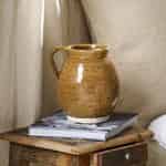 Stellen Sie sie mit ein paar getrockneten Lavendelzweigen auf Ihren Kaminsims oder lassen Sie sie als schlichtes, skulpturales Objekt für sich allein auf einem Bücherregal wirken. Ihre warmen Töne und die klassische Krugform fügen sich mühelos sowohl in moderne rustikale als auch in traditionelle Interieurs ein und schaffen eine erdende Präsenz. Sie ist eine Einladung, ein Stück des entspannten, sonnenverwöhnten Charmes der französischen Landschaft in Ihren Alltag zu bringen und Momente stiller Schönheit zu schaffen.