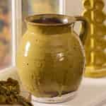 Inspiriert von den sonnenverwöhnten Landschaften und rustikalen Brocantes der Provence, ist die Avignon-Vase von Ib Laursen eine Hommage an die unvollkommene Schönheit. Ihre massive Keramikform ist mit einer satten, warmen senffarbenen Glasur überzogen, die sich sammelt und Vertiefungen bildet, wodurch eine einzigartige Topografie auf ihrer Oberfläche entsteht, die zum Berühren einlädt. Jedes Detail, vom schlichten, stabilen Henkel bis zum kalkweißen Sockel, fühlt sich authentisch und altehrwürdig an, als wäre es seit Generationen ein geliebter Teil eines Familienhauses.
