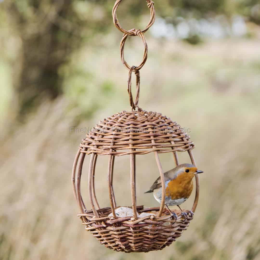 Stellen Sie sich die stille Freude vor, Rotkehlchen und andere kleine Vögel in Ihrem Garten zu beobachten. Dieser wunderschön gearbeitete Futterspender, aus natürlicher Weide geflochten, bietet ihnen einen bezaubernden und sicheren Platz zum Fressen und bringt einen Hauch von rustikalem Leben direkt vor Ihr Fenster.