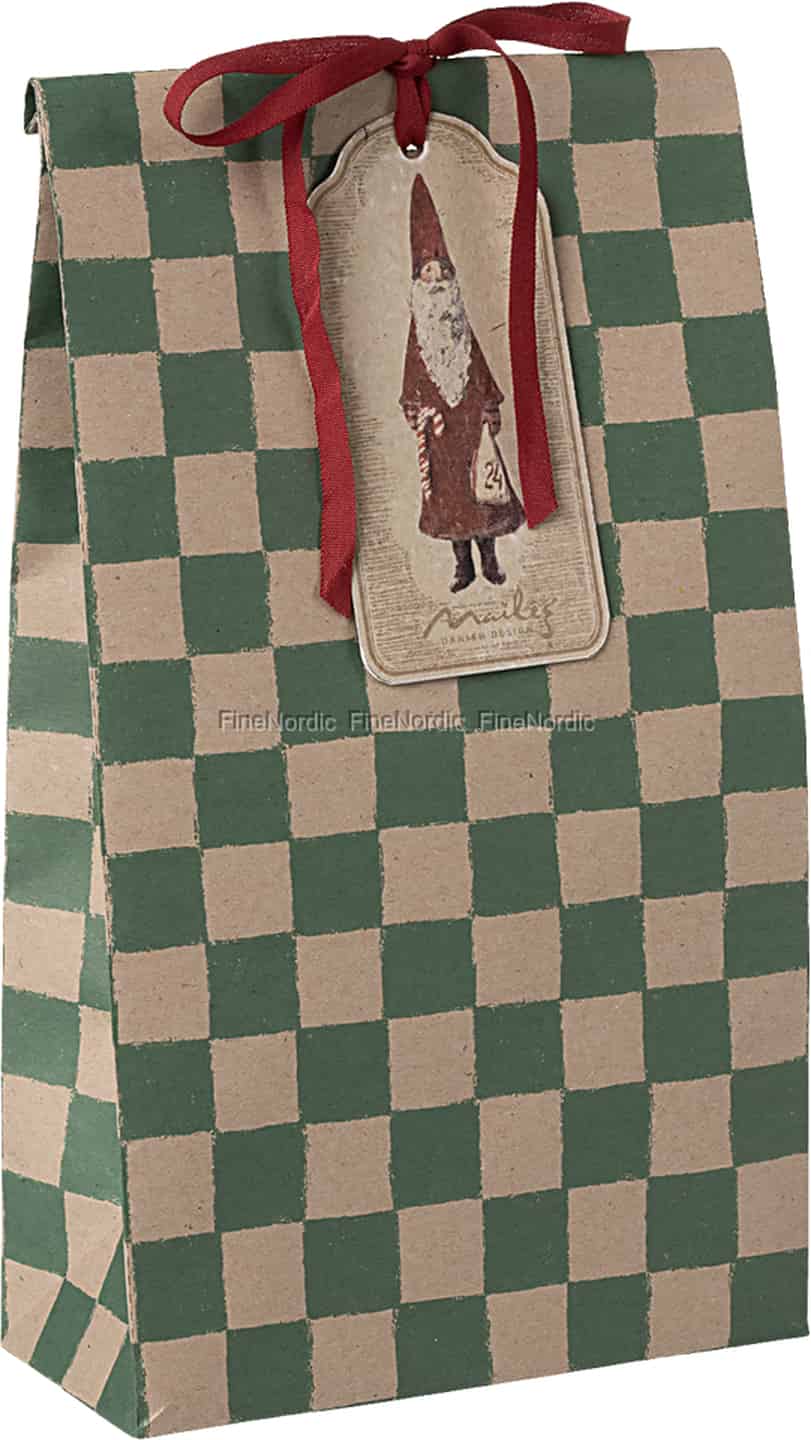 In der Welt von Maileg erzählt jedes Detail eine Geschichte, und die Art, wie ein Geschenk verpackt ist, ist der Einband dieser Erzählung. Diese liebenswerte Papiertüte mit ihren sanften grünen und erdigen beigefarbenen Karos fängt die Essenz skandinavischer Schlichtheit ein. Sie ist mehr als nur eine Verpackung; sie ist das leise Rascheln der Vorfreude, ein Versprechen auf die Magie, die sie in sich birgt. Das stabile Papier fühlt sich ehrlich und authentisch in den Händen an, bereit, mit Liebe gefüllt zu werden.