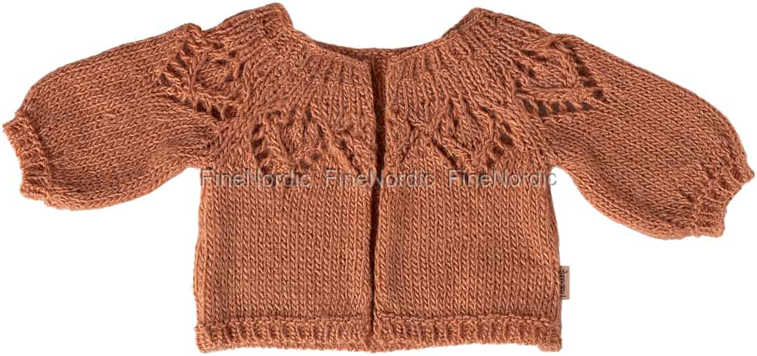 Wenn ein kühles Lüftchen weht, braucht Ihr Maileg-Freund eine zusätzliche wärmende Schicht. Diese wunderschön detaillierte Strickjacke in einem zarten Altrosaton ist das perfekte Kleidungsstück, um es bei fantasievollen Abenteuern kuschelig warm zu haben.