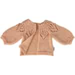 Jedes Detail dieses Miniatur-Cardigans ist darauf ausgelegt, Staunen zu wecken. Das weiche, hellrosa Garn ist zu einem zeitlosen Stück verstrickt, mit zarten, durchbrochenen Details am Ausschnitt, die von sorgfältiger Handwerkskunst zeugen. Die sanften Puffärmel verleihen eine verspielte Silhouette, perfekt für Mailegs geliebte Hasen und Kaninchen der Größe 3. Es ist mehr als nur ein Accessoire; es ist ein winziger Schatz, der einem geliebten Freund eine neue Ebene der Persönlichkeit verleiht und ihn für einen ruhigen Nachmittag voller Fantasiespiele bereit macht.