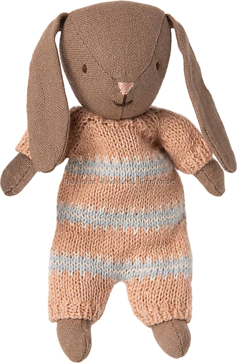 Maileg Hase Micro - Braun - Altrosa Strickanzug - mit magnetischen Händen