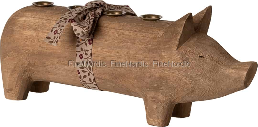 Maileg Holz-Kerzenhalter Adventsschwein (Ø ca. 1,2 cm) - Natur