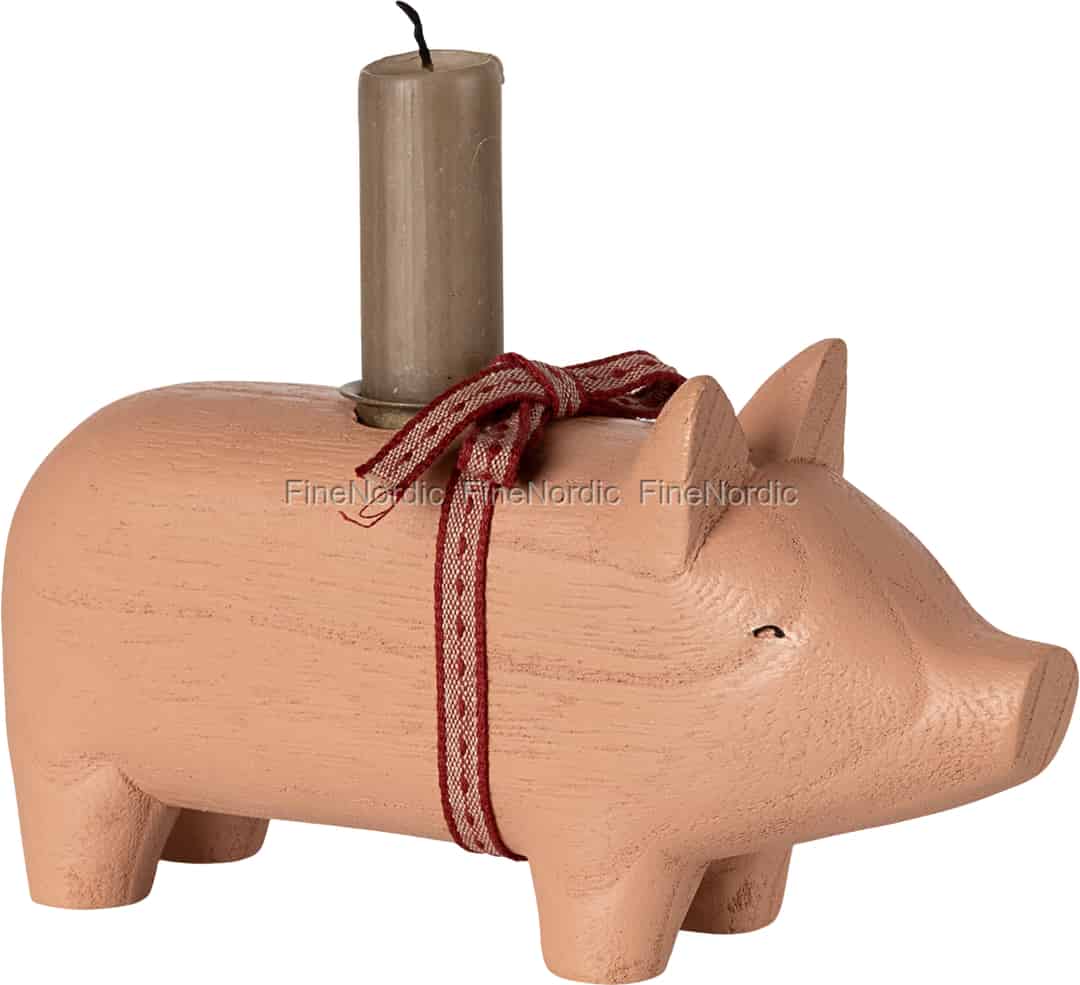 Maileg Kerzenhalter Schwein aus Holz, Mittel (Ø ca. 2,2 cm) - Rosa