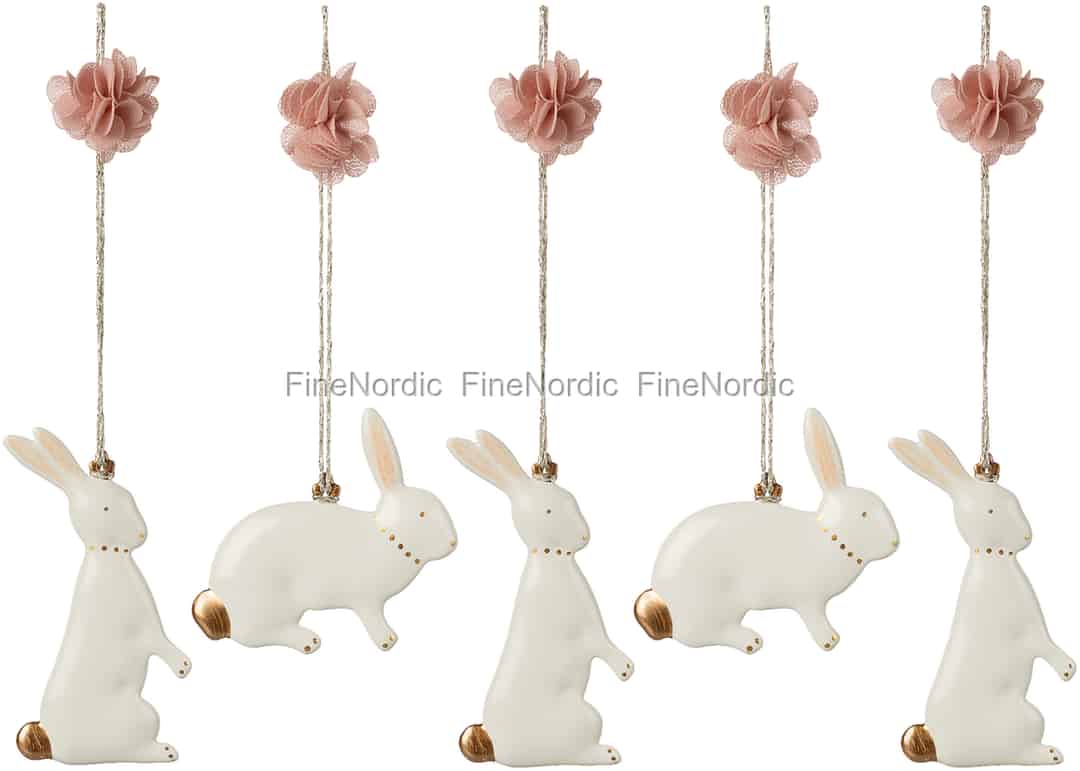 Begrüßen Sie den sanften Einzug des Frühlings mit diesen bezaubernden Osterornamenten von Maileg. Dieses entzückende Set aus fünf Metallhasen, jeder in einer einzigartigen Pose, ist bereit, eine leise, märchenhafte Magie in Ihre saisonale Dekoration zu zaubern.
