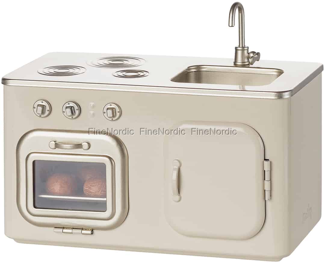 Lassen Sie die Geschichten im gemütlichsten Raum des Hauses beginnen. Diese exquisite Maileg Miniatur-Küche ist ein Meisterwerk nostalgischen Designs und wartet nur darauf, zur Kulisse für unzählige glückliche Momente zu werden. Von der glänzenden cremeweißen Lackierung bis zum zufriedenstellenden Klicken der metallenen Backofentür ist jedes Detail darauf ausgelegt, zu inspirieren. Ihre Maileg-Freunde können sich versammeln, um nach den winzigen Broten im Ofen zu sehen, nach einem Festmahl im silberfarbenen Spülbecken abzuwaschen oder einfach die Wärme zu genießen, die von diesem bezaubernden Herzstück ausgeht. Es ist mehr als ein Spielzeug; es ist eine Einladung in eine Welt der Fantasie.