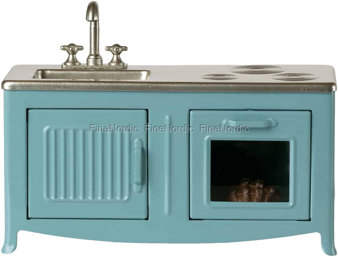 Jedes Mäusehaus braucht eine warme, einladende Küche, und dieses bezaubernde Stück von Maileg ist dazu bestimmt, ihr Herzstück zu werden. In einem ruhigen, staubigen Blau lackiert, lädt ihr vom Vintage-Stil inspiriertes Design zu endlosen Geschichten ein. Stellen Sie sich vor, wie Ihre Maileg-Freunde sich versammeln, um nach dem Brotlaib zu sehen, der im Ofen backt – durch das kleine Fenster spähend – oder winziges Gemüse in der silberfarbenen Spüle waschen. Die stabile Metallkonstruktion verleiht ihr eine schöne, wertige Haptik und verspricht, dass sie über Generationen hinweg ein zentraler Bestandteil des Familienspiels sein wird.