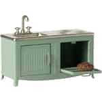 - Authentischer Vintage-Charme: Die klassische Mintfarbe, die geriffelte Schranktür und das silberfarbene Spülbecken mit Wasserhahn verleihen Ihrer Maileg-Welt einen Hauch von nostalgischem Charme und lassen jede Szene authentisch wirken.