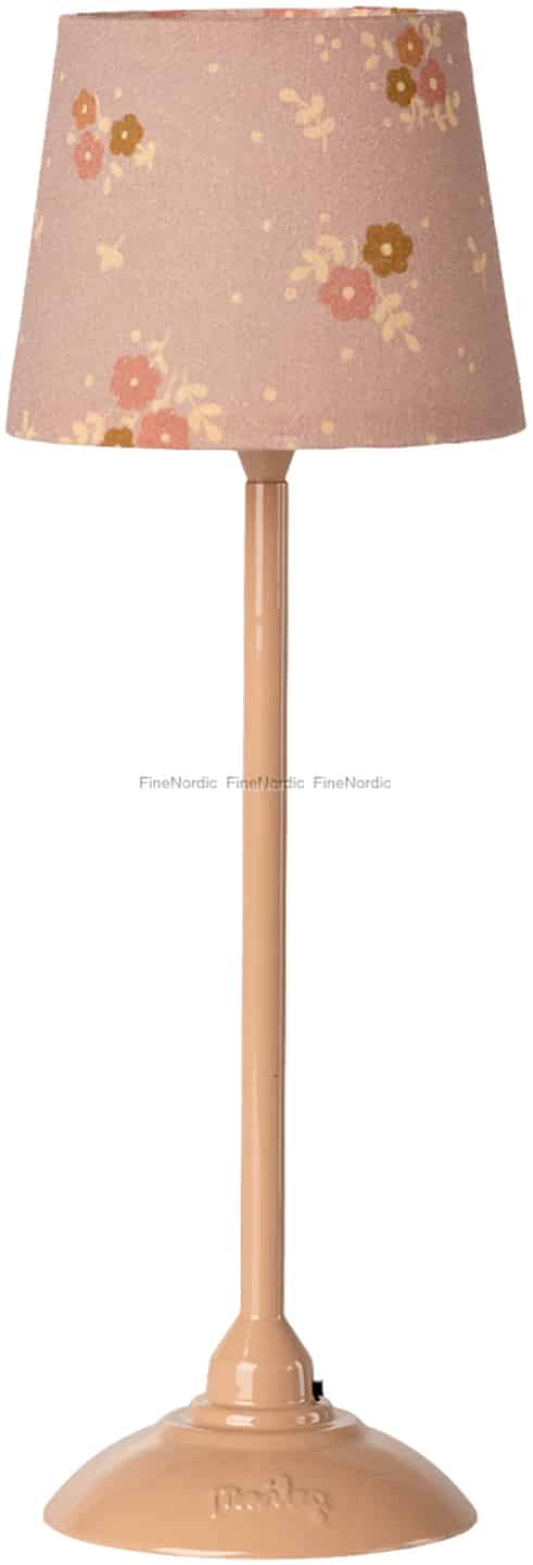 Stellen Sie sich vor, wie Ihre Maileg-Freunde in ihrem Wohnzimmer versammelt sind, ein winziges Märchenbuch auf dem Boden aufgeschlagen. Diese exquisite Miniaturlampe ist das Detail, das die Szene vervollständigt. Gefertigt aus Metall mit einem sanften, dunkelpudrigen Finish, hat sie ein klassisches Design, das sich sowohl zeitlos als auch lebensecht anfühlt. Der Stofflampenschirm mit seinem bezaubernden Blumenmuster fügt einen Hauch von Farbe und Wärme hinzu und verwandelt jeden kleinen Raum in eine gemütliche Ecke zum Lesen und Träumen.