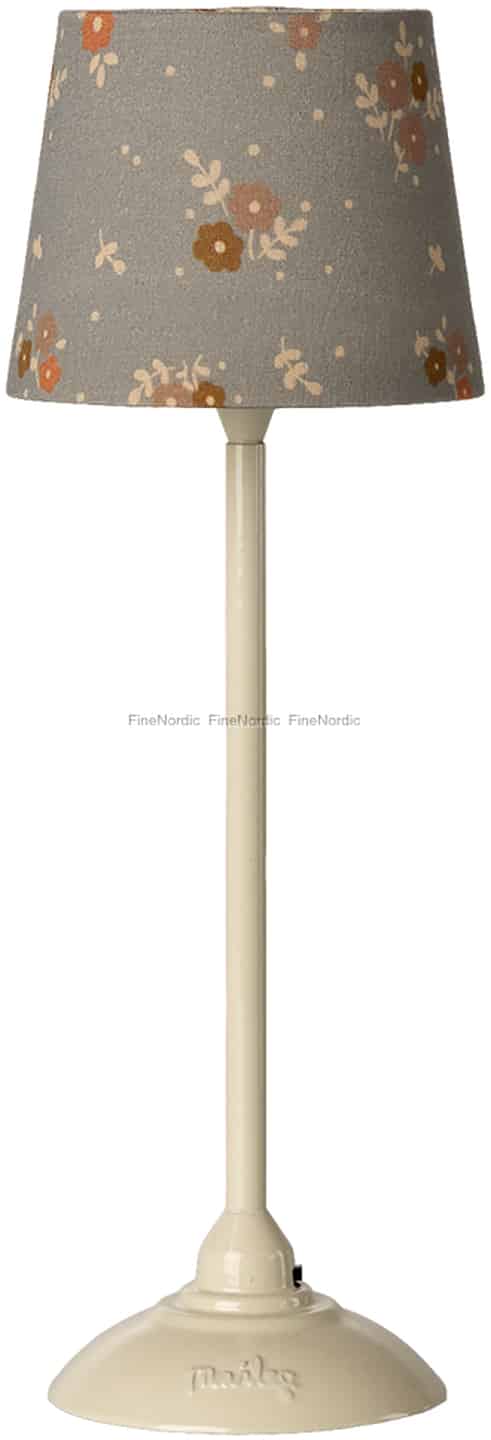 Jedes Miniatur-Zuhause braucht einen Hauch von Wärme, und diese exquisite Stehlampe von Maileg spendet davon reichlich. Der robuste Metallfuß in einem sanften Sandton wirkt wunderbar klassisch, während das dezent geprägte Maileg-Logo ein leises Versprechen für authentisches dänisches Design ist. Gekrönt von einem Stoffschirm mit einem zarten Blumendruck in Erdtönen, bringt sie einen Hauch von Bauerngarten ins Haus und ist bereit, unzählige kleine Szenen zu beleuchten.