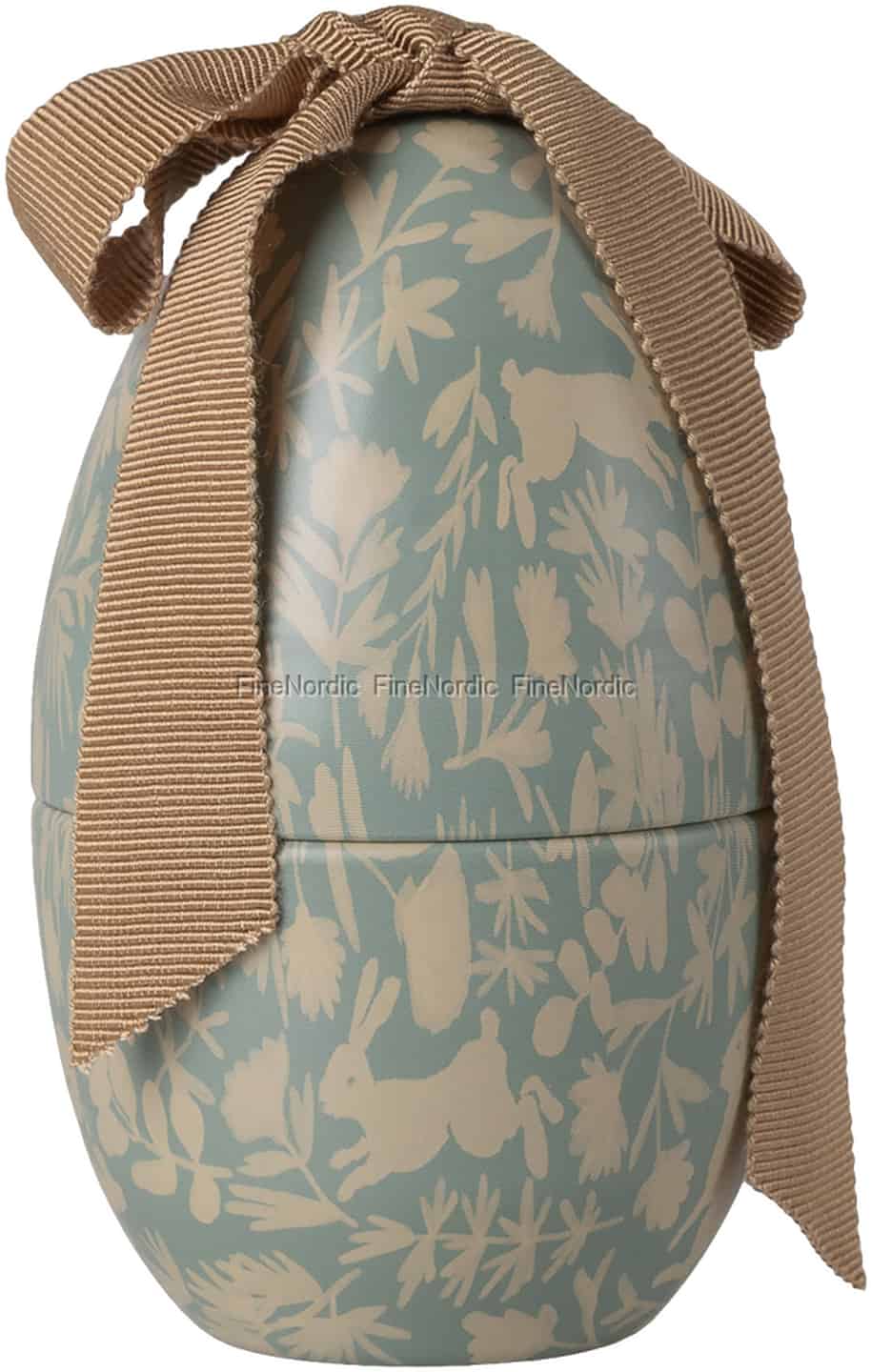 Entdecken Sie eine zauberhaftere Art, Ostern zu feiern – mit diesem exquisiten Metallei von Maileg. Das zarte, staubblaue Finish bildet einen ruhigen Hintergrund für ein verspieltes Muster aus cremefarbenen Hasen, die zwischen Wildblumen tanzen. Ein klassisches Ripsband in einem warmen Braunton ist oben ordentlich gebunden und verleiht dem Stück zeitlose Eleganz. Es ist ein wunderschönes Objekt, das den stillen Charme eines skandinavischen Frühlings einfängt und dafür gemacht ist, bewundert und von kleinen Händen gehalten zu werden.