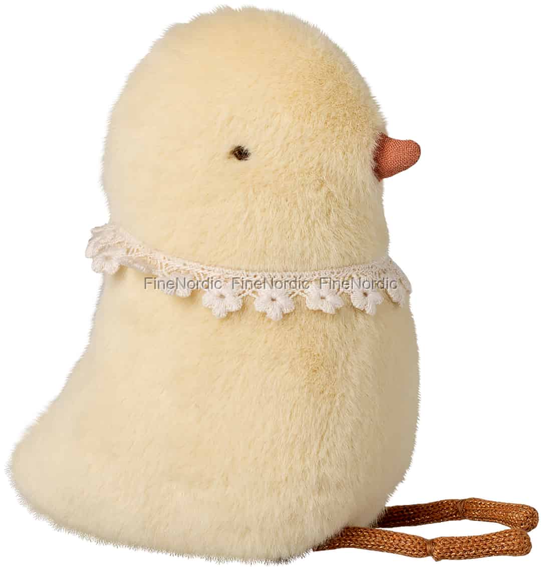 Entdecken Sie in diesem wunderbar weichen Plüsch-Hähnchen von Maileg einen Freund für jede Jahreszeit. Mit seinem flauschigen, zartgelben Fell und seinem lieben, sanften Ausdruck ist es bereit, einen Hauch stiller Freude und fantasievolles Spiel in Ihr Zuhause zu zaubern.